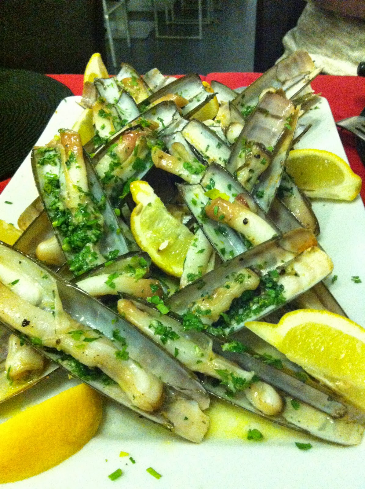| Plat de couteaux à l'ail et au persil frais et citron. |