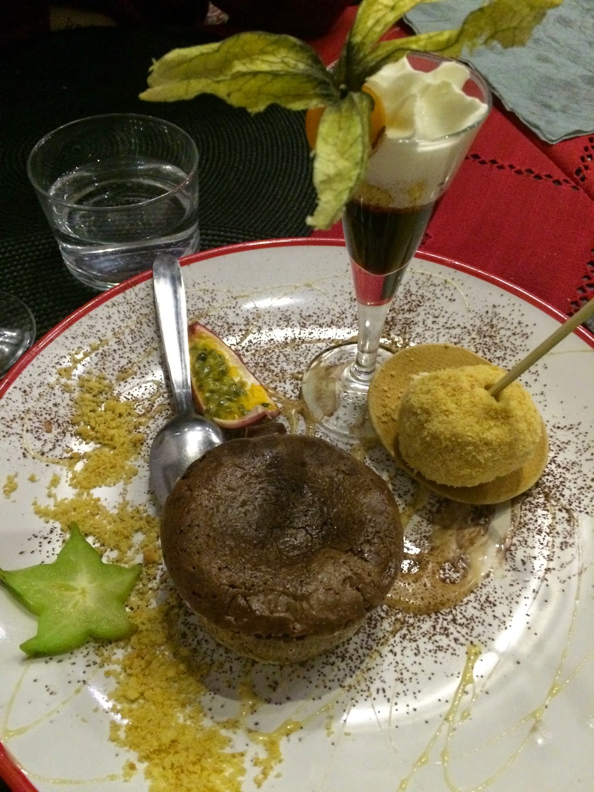 Mon plat si attendu était une brochette (des brochettes) de lotte au Chorizo, mais pas n'importe lequel un d'Espagne, ni gras, ni trop épicé, un qui a du gout et que du gout présenté dans une noix de coco, trop mimi. Bien dommage que les photos ne rendent pas... Mais que ça sentait bon !
