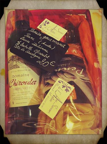 La vitrine y était toute mimine, décorée pour les fêtes, des coffrets étaient déjà préparés. Je trouve ça chouette des petits paniers à pas trop cher pour offrir, comme on dit pour "marquer le coup" et faire plaisir aussi.