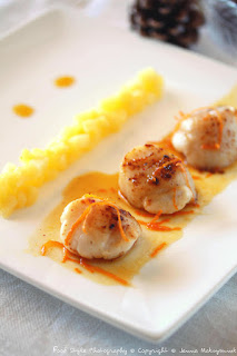 " Poêlée de Saint-Jacques au beurre d'agrumes et sa compotée de pommes ".