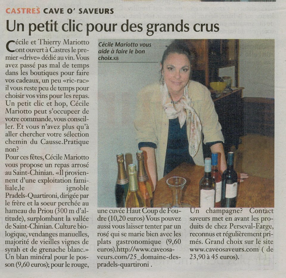 #vin #cave #caviste #tarn #castres #albi #mazamet #restaurant#cartesdesvins #ecommerce #bouteilles #vignerons #gastronomie#caveosaveurs #siteinternet #degustation Département du Tarn Le Journal d'Ici Journal La Montagne Noire Ladepeche.fr Vins des Côtes de Gascogne Vins de Provence/Wines of Provence-CA Vins AOC Languedoc Vins Pays d’Oc IGP Vignerons indépendants de Champagne